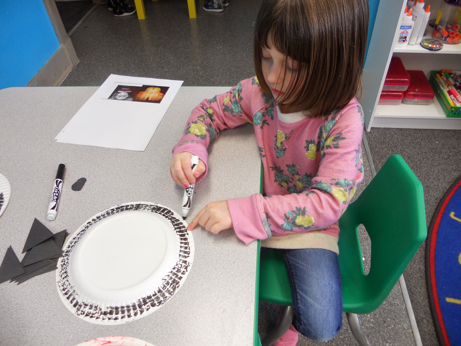 Yesterday we started off the week by talking about him, to see what they kids knew about Dr.Seuss. For art the kids had different pieces to make The Cat in the Hat with a paper plate. We also made Oh the places you'll go themed cookies!