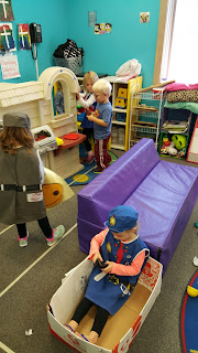 What a bunch of cute little community helpers!! They LOVE LOVE LOVE having a bunch of dress up centers out for the week, pretending to walk around their community, and helping everyone that is in their community. :)